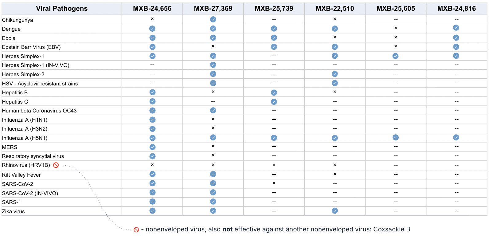 Our first lead drug candidate, MXB-22,510, has the potential to replace many antifungals and antibiotics, as well as provide a front line therapy for many types of viral infections.